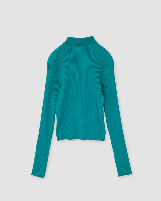 16G RIB DOUBLE ZIP CARDIGAN - AQUA BLUE