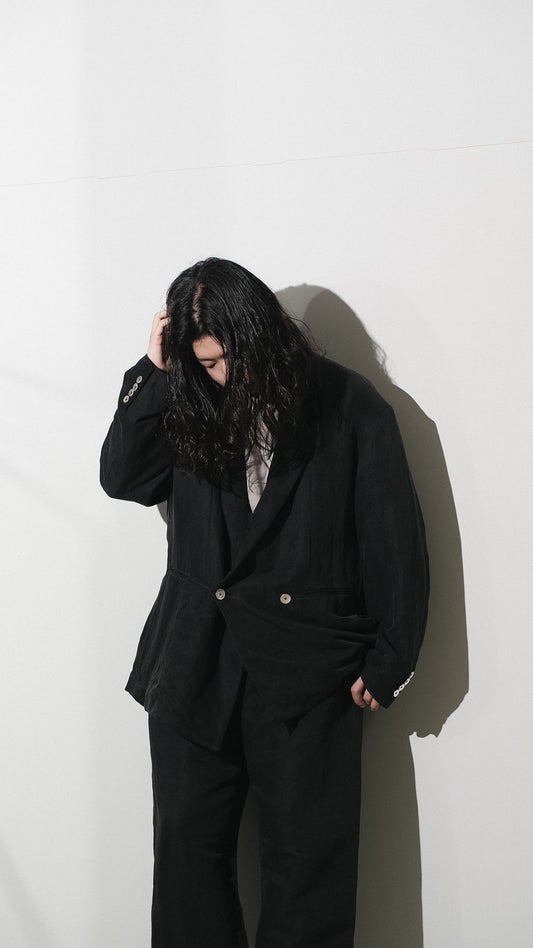 SILK LINEN DOUBLE BRESTED JACKET - BLACK