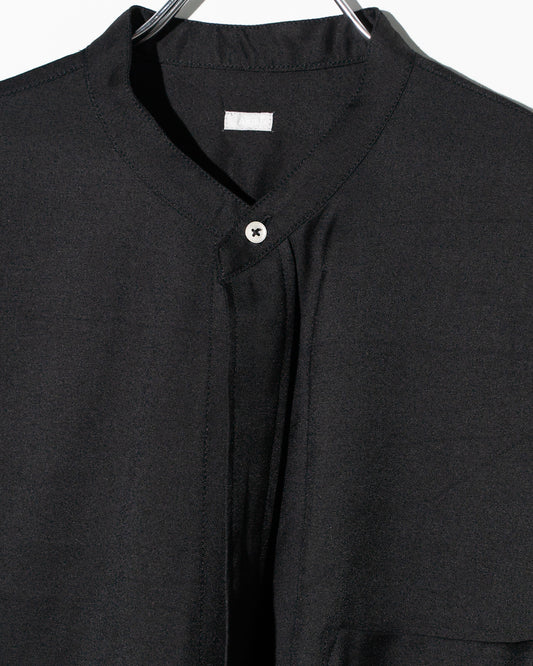 FLOWER JACQUARD OPEN COLLAR SHIRT - BLACK