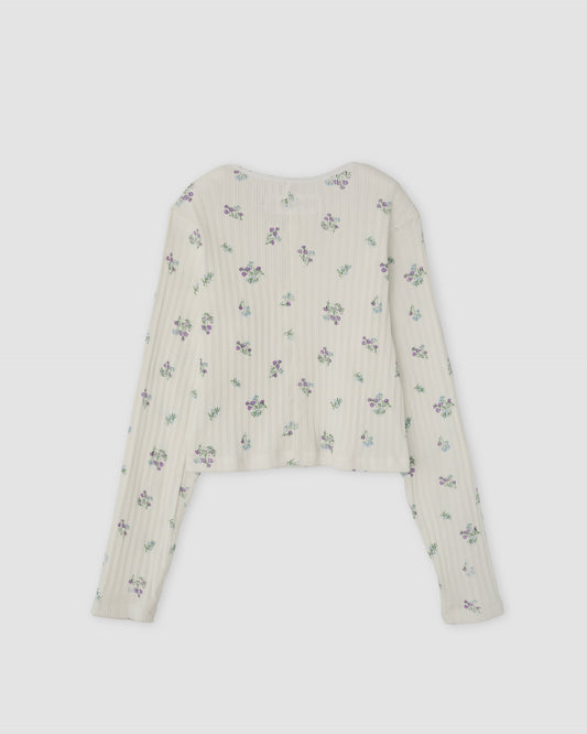 COTTON EYELET RIB FLOWER CARDIGAN - FLOWER