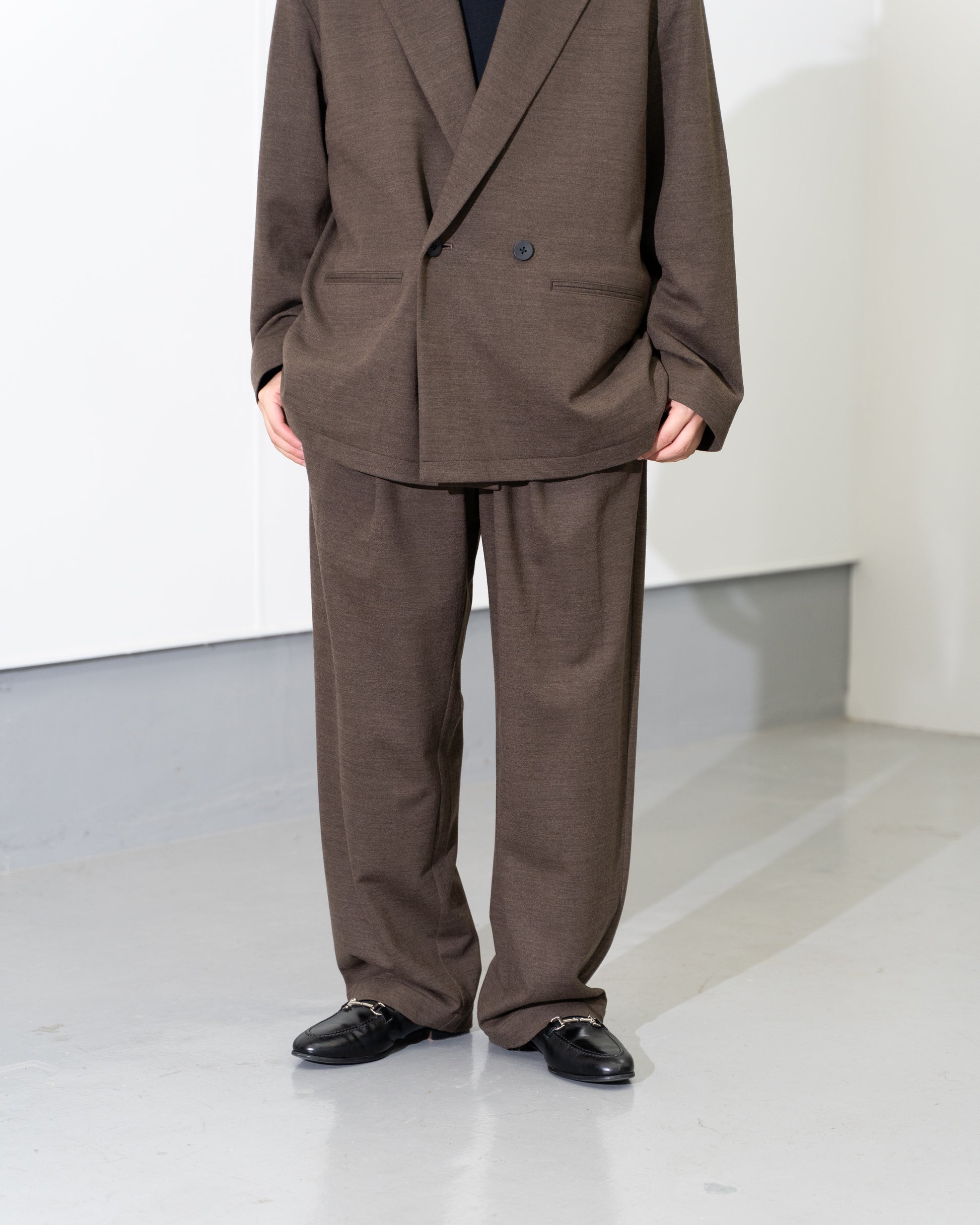 When worn unzipped, it has the feel of slacks. When zipped, it becomes casual sweatpants. This is a new model from KANEMASA PHIL., made with luxuriously selected fabrics.