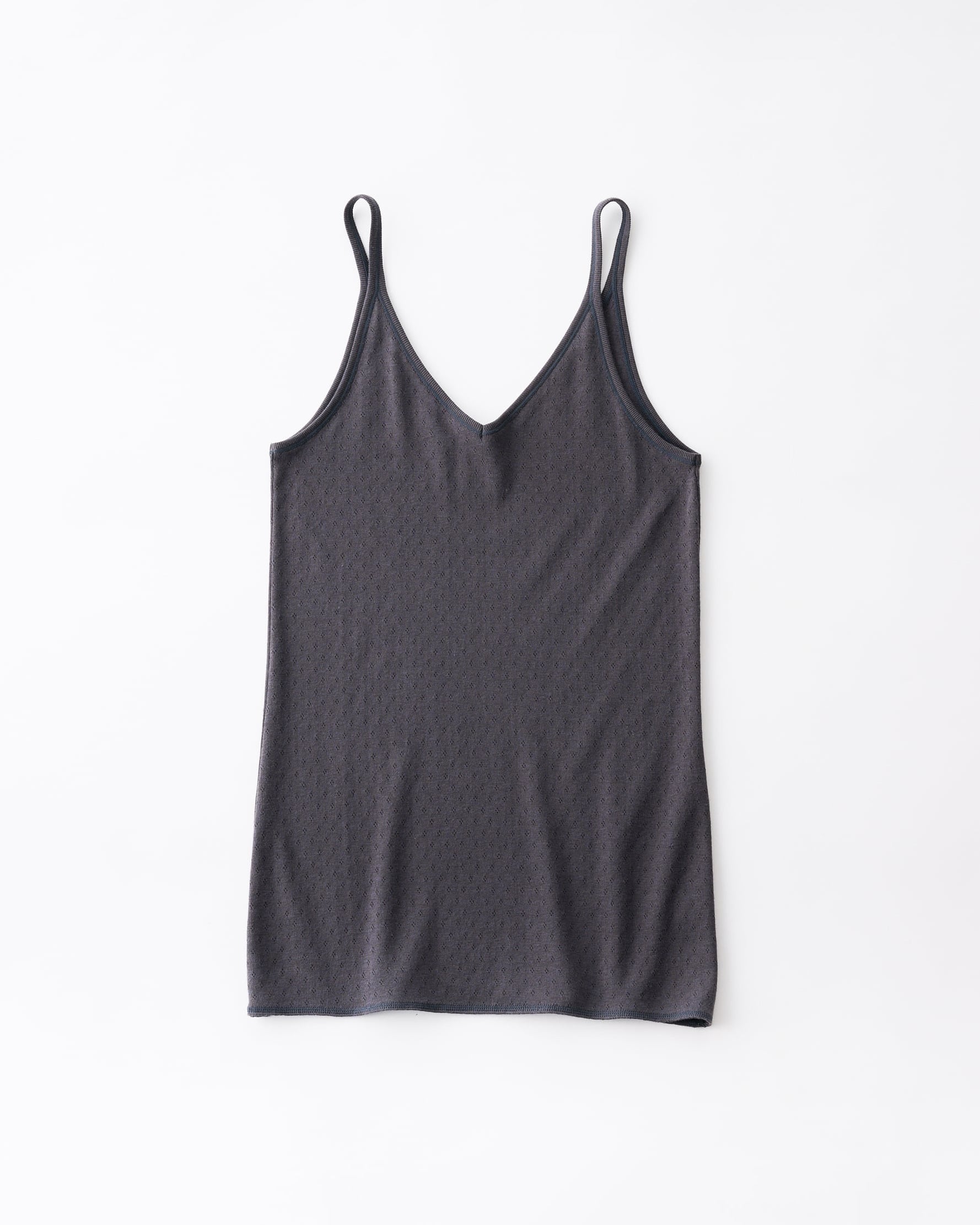 COTTON SILK PATTERN MESH JACQUARD COTTON SILK DOUBLE V NECK CAMISOLE - CHARCOAL
