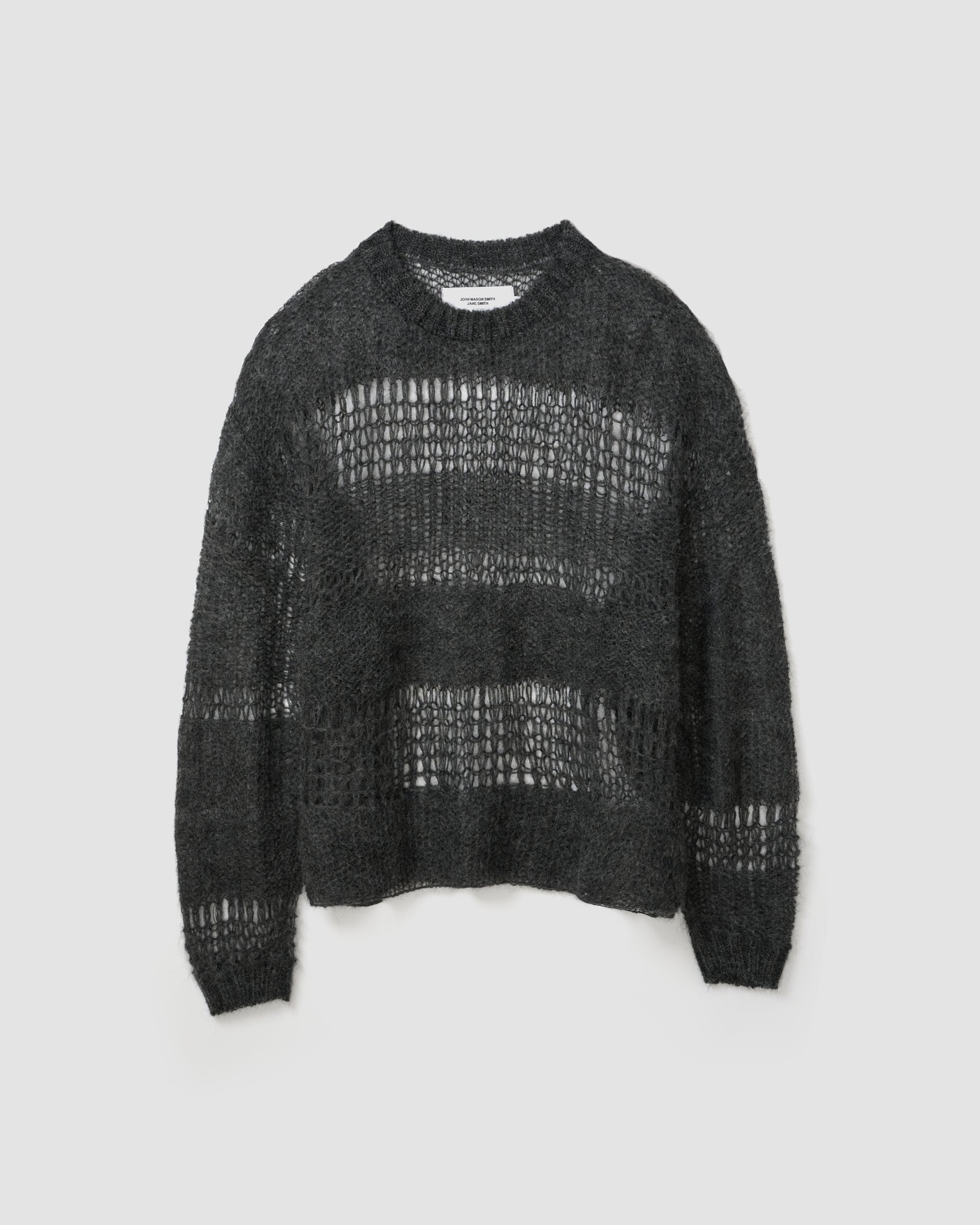 MOHAIR RANDOM BORDER CREW KNIT - GRAY