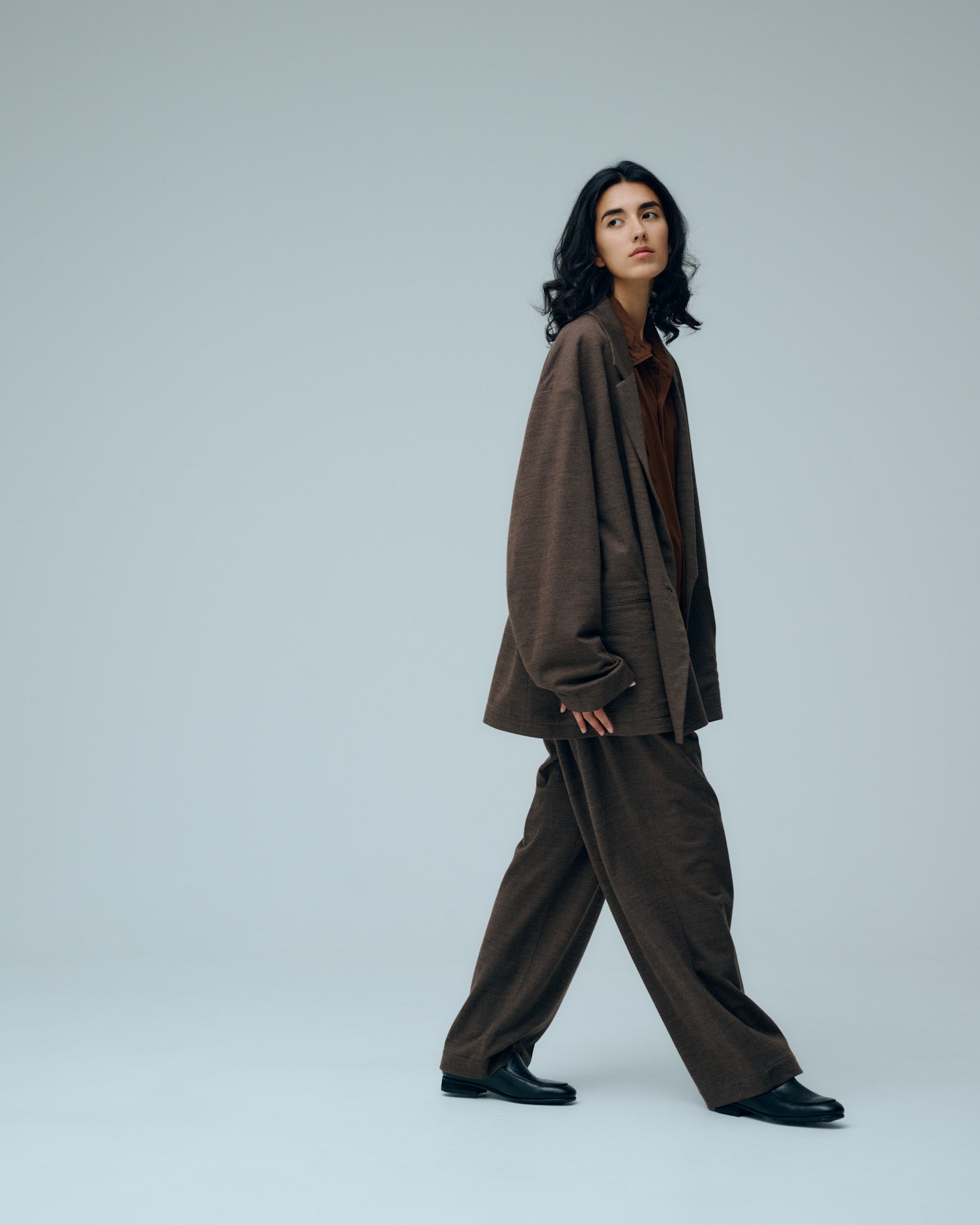36G WOOL HERRINGBONE DOUBLE JACKET - BROWN