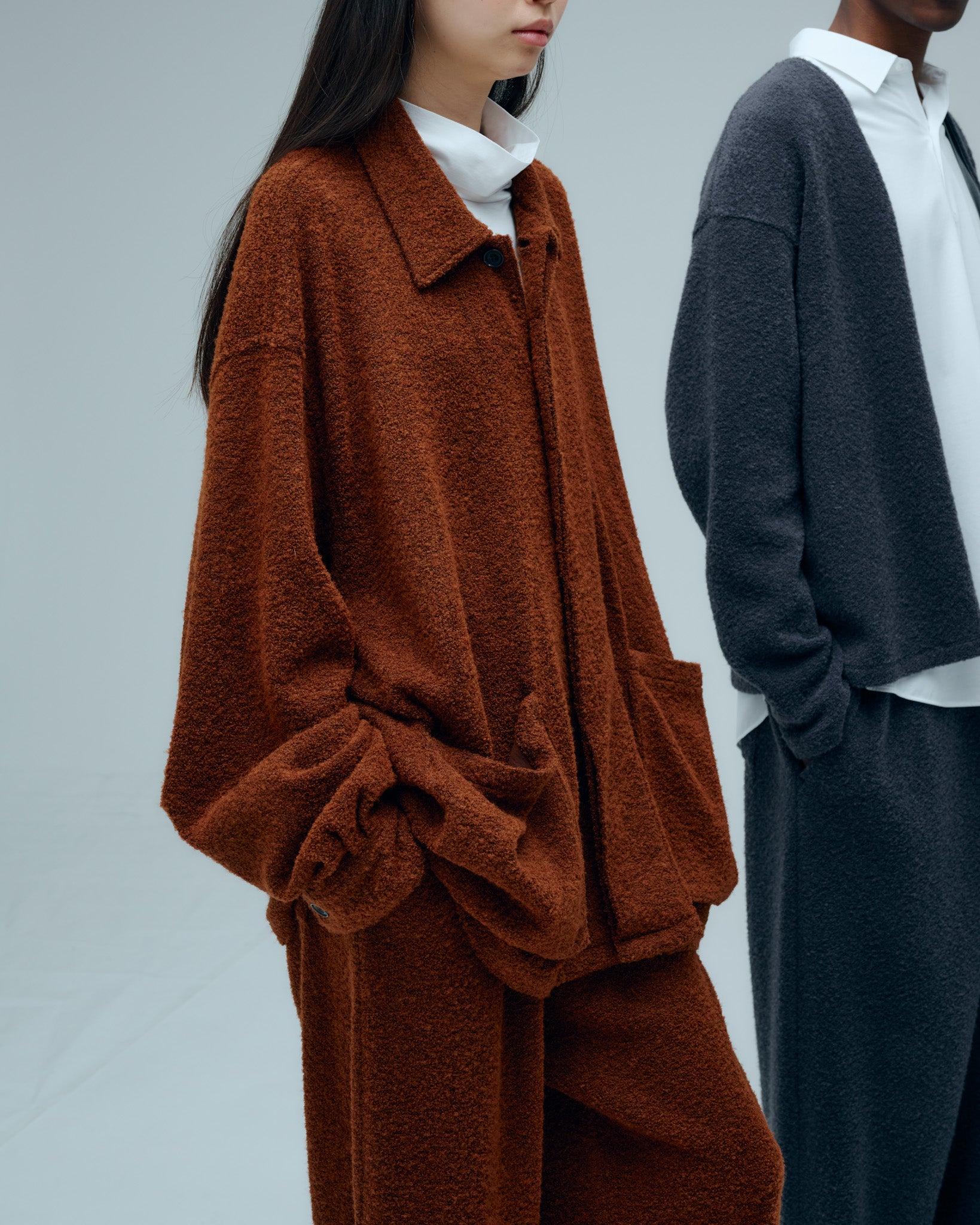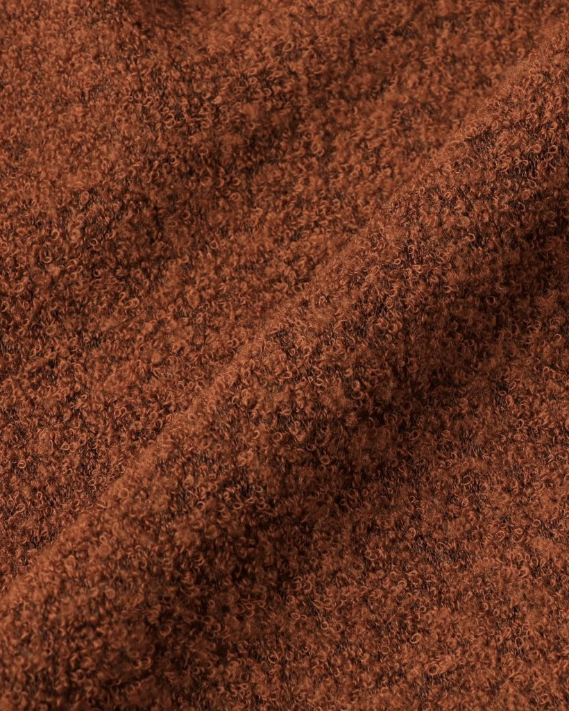 ※ブークレ色…表面に糸の輪っかが出るように加工された糸。フランス語で「輪」という意味で、英語ではループヤーン(loop yarn)と呼びます。モコモコとした肌触りや見た目を表現することができる糸。