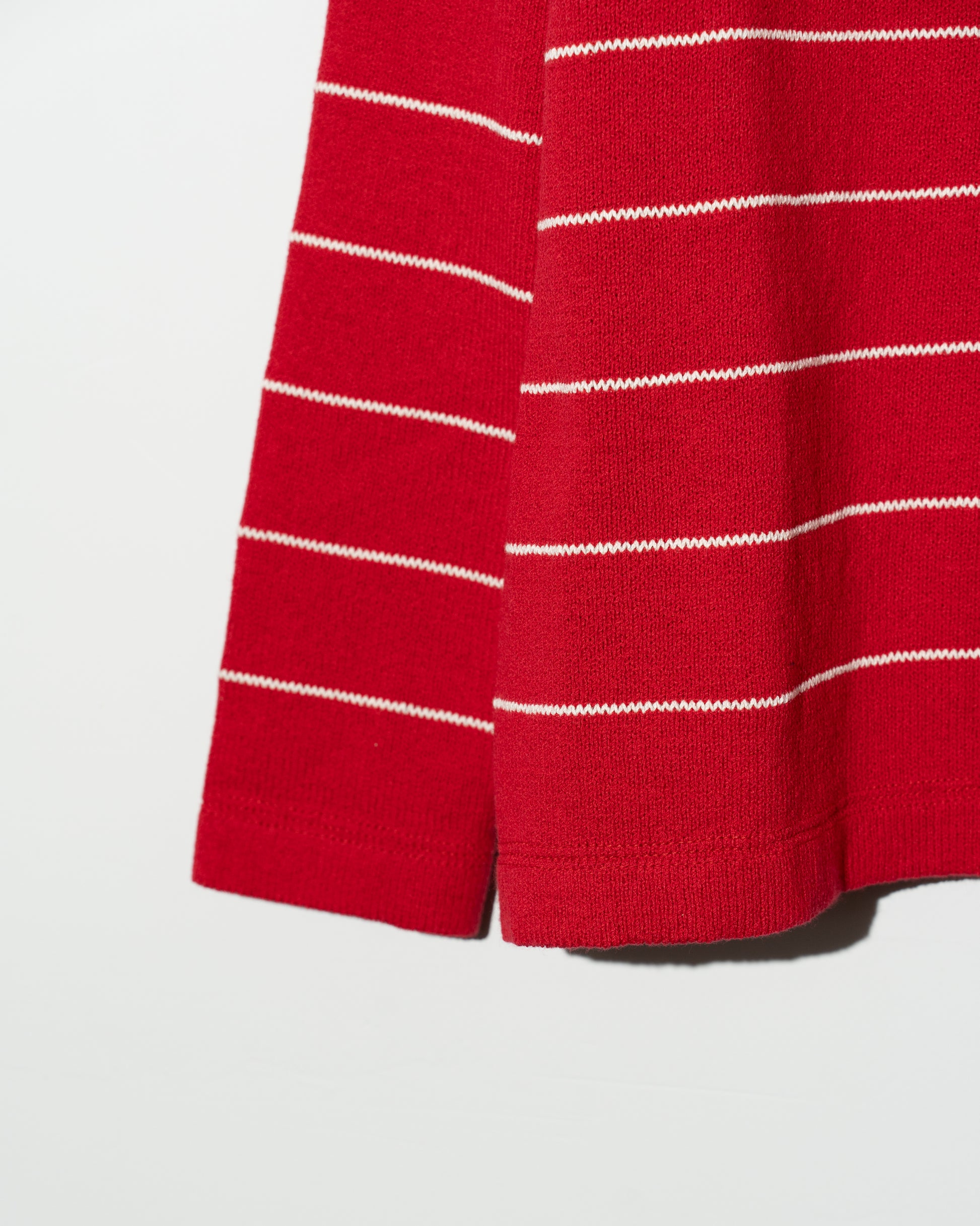 襟があること、程よいゆとりのあるシルエット、ボーダーの線の細さなど計算されたポイントにより上品な仕上がりに。