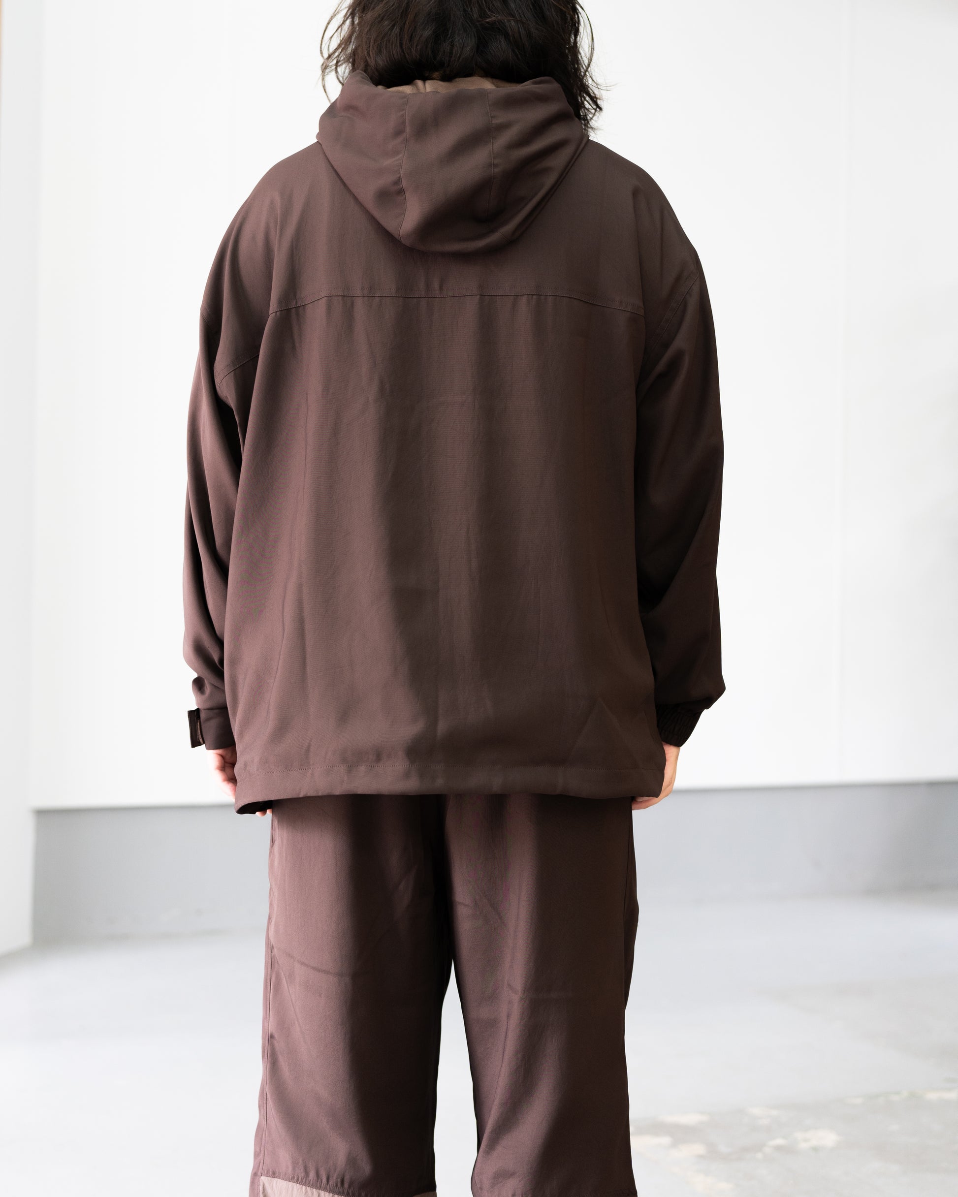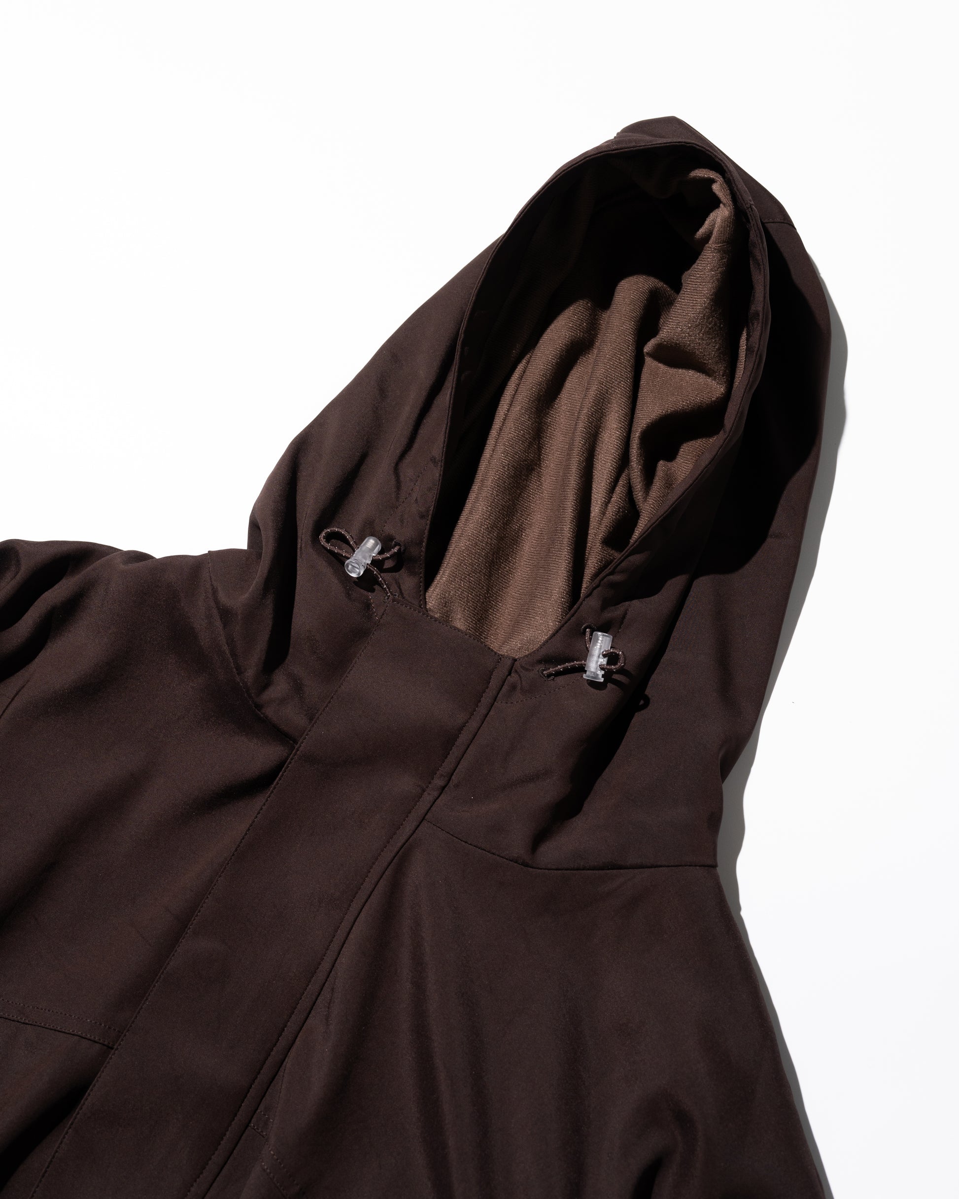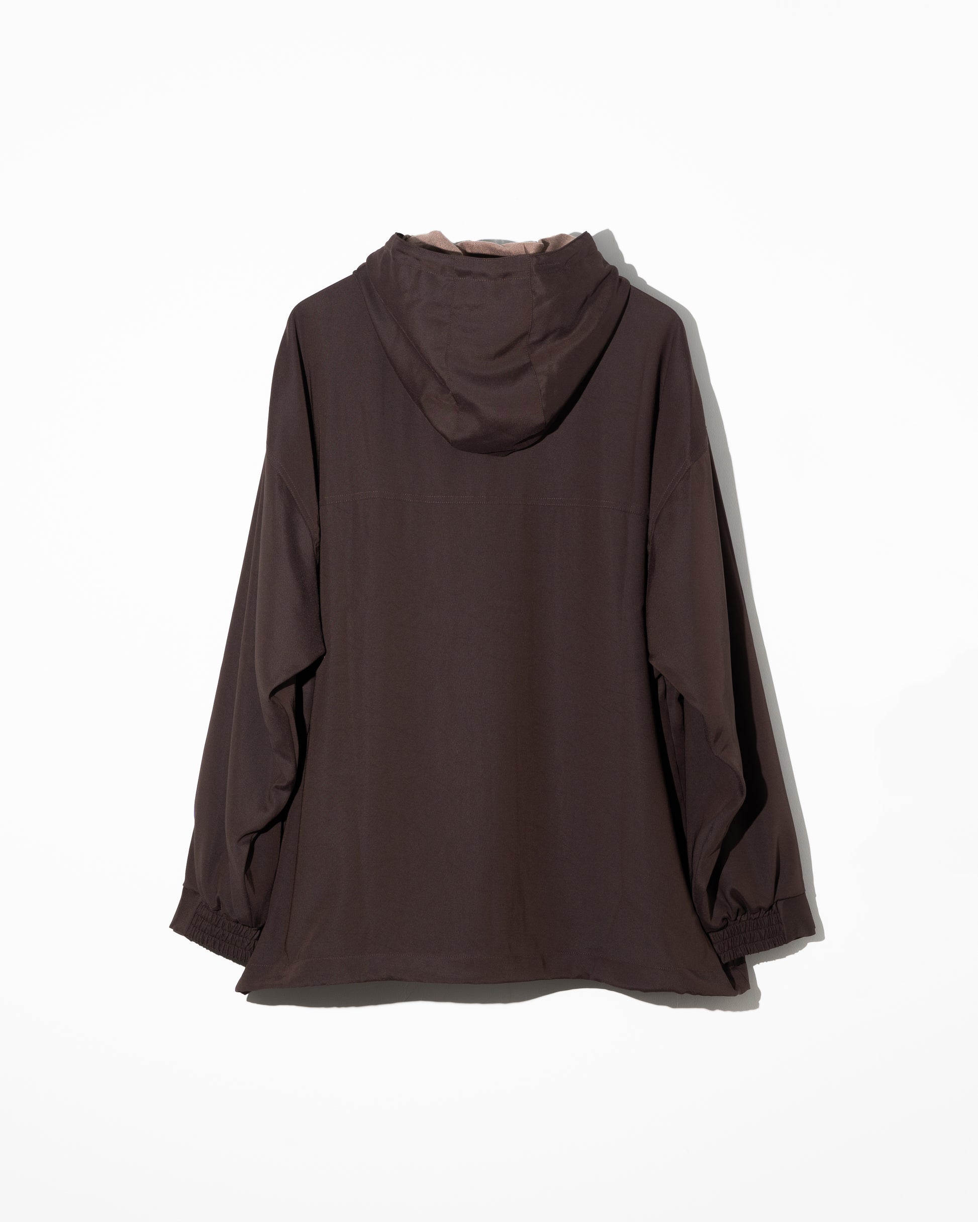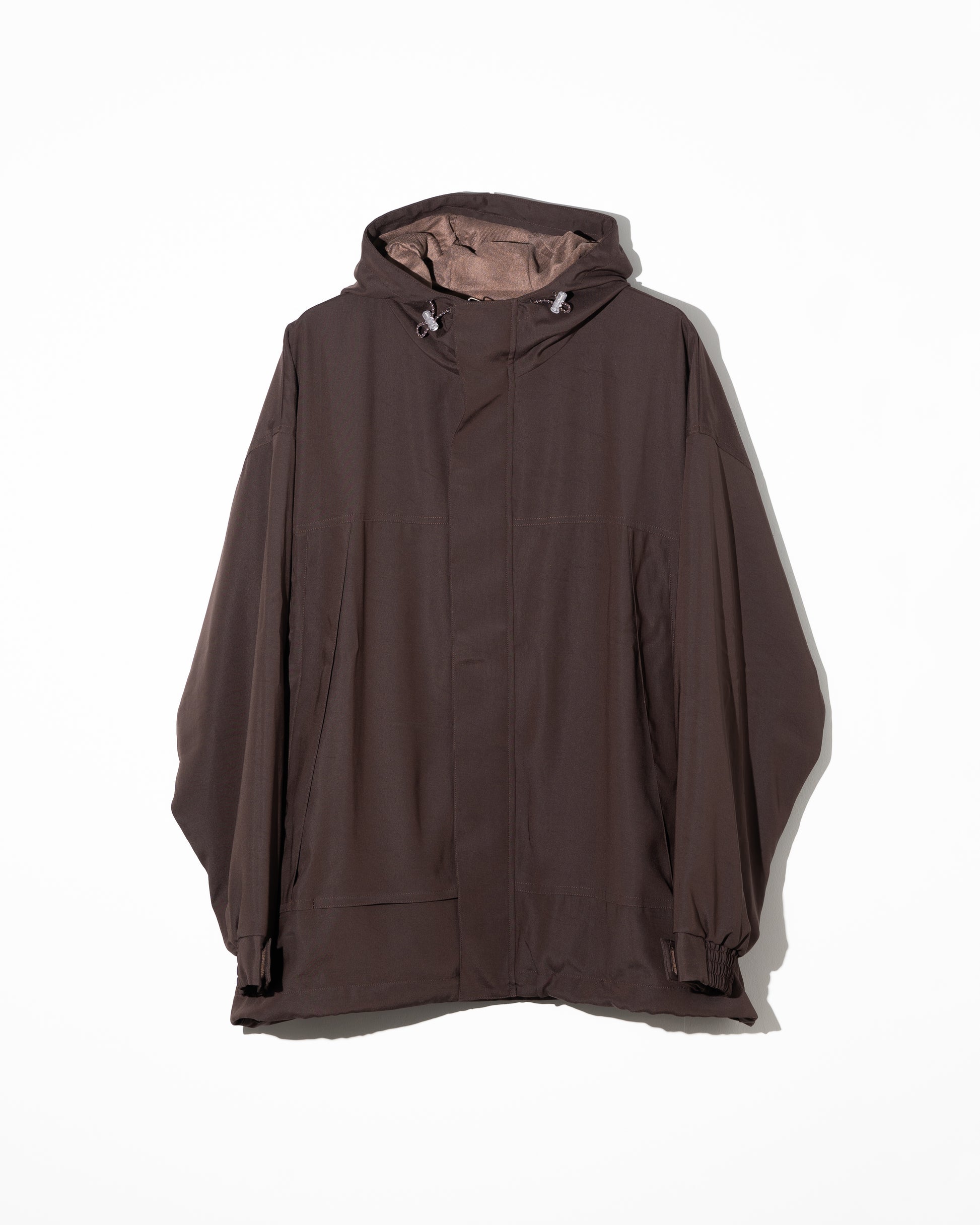 フード付きながら比翼仕立ての前立ての為、テックウェアながらも端正な印象を与えます。