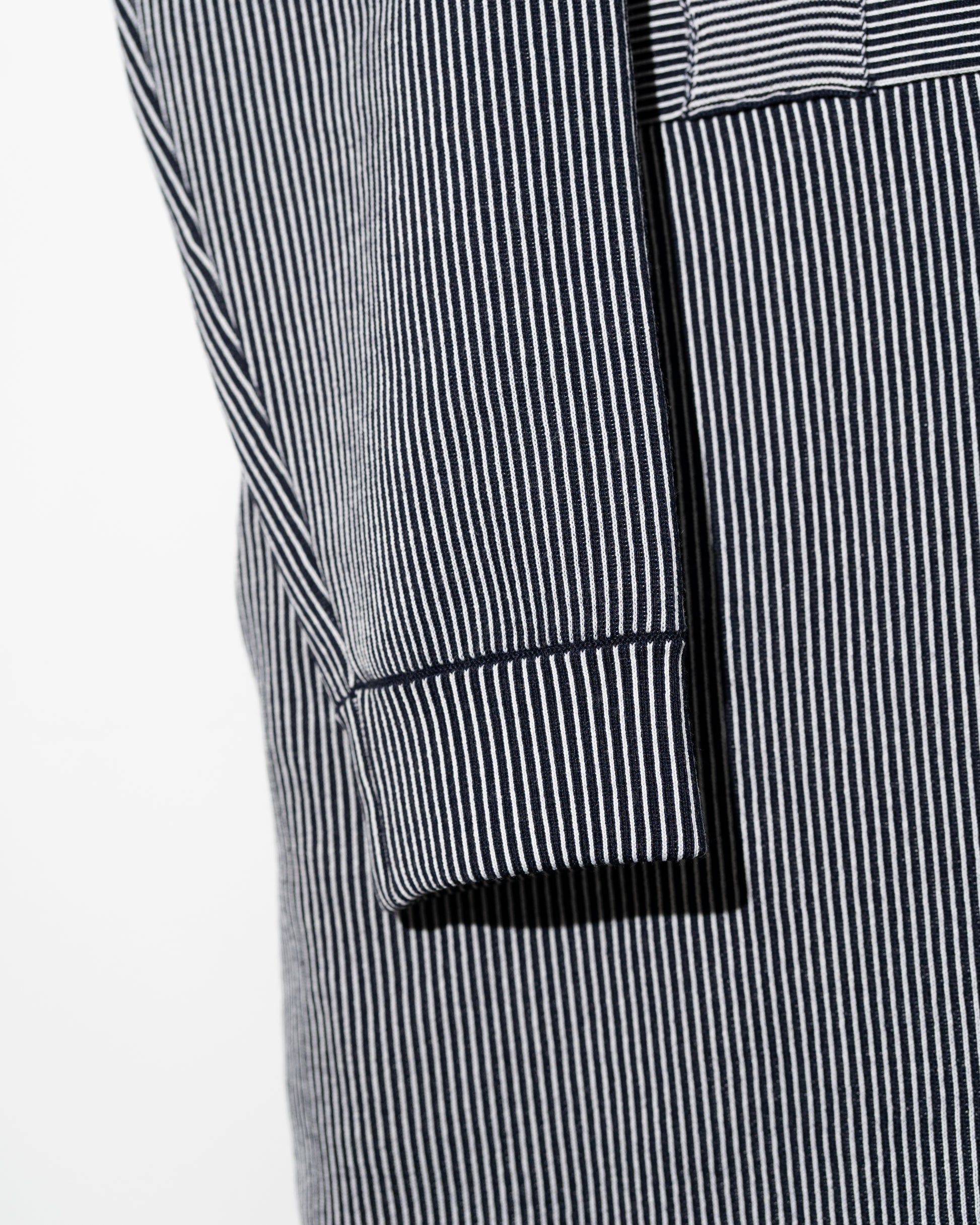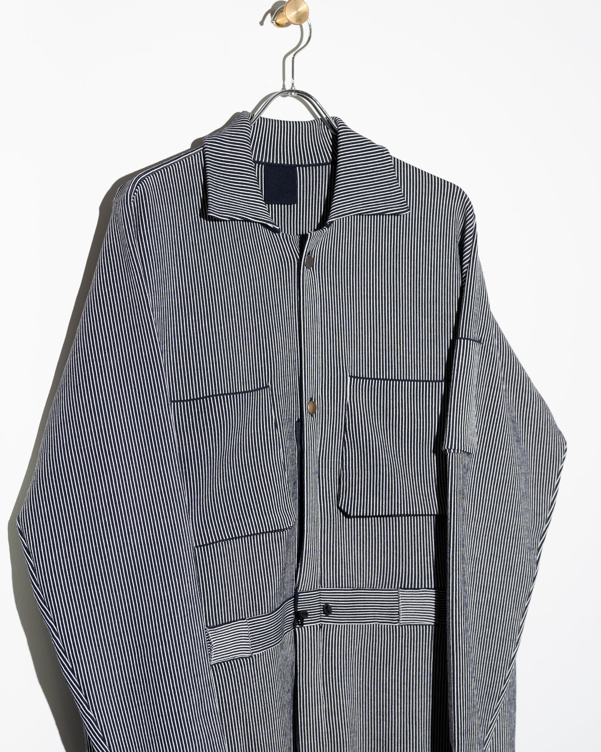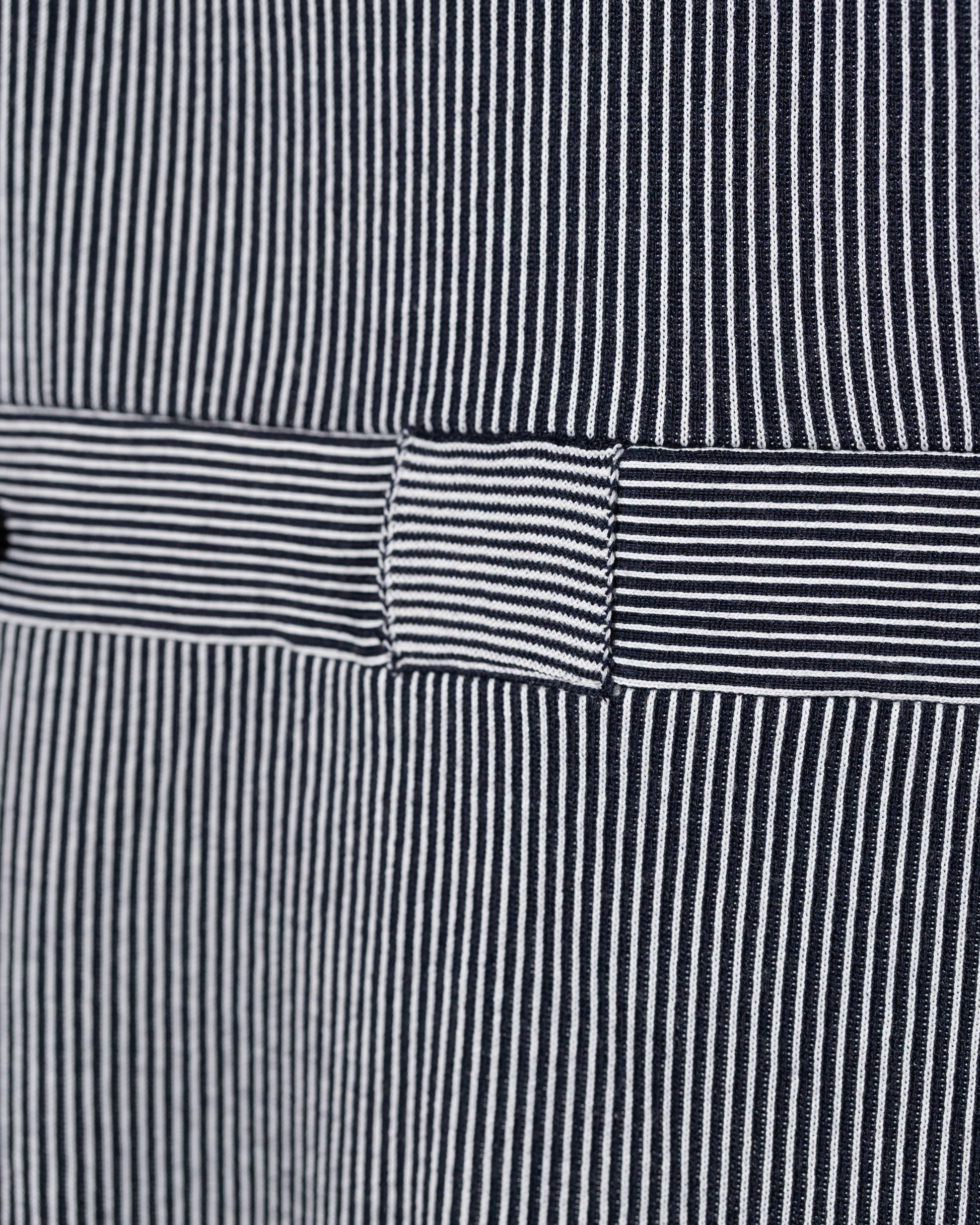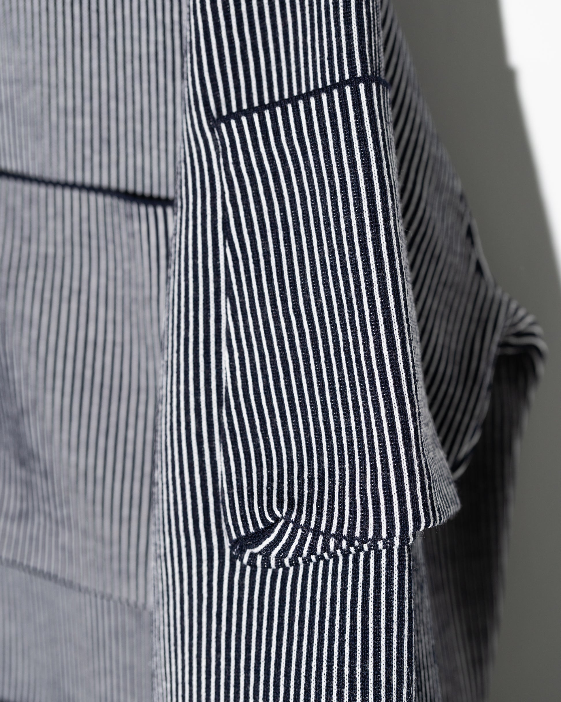 胸、左袖、後ろポケットを全て立体的に仕立て、ベルトループも前2つ、後ろ3つ付けてポイントにしてます。