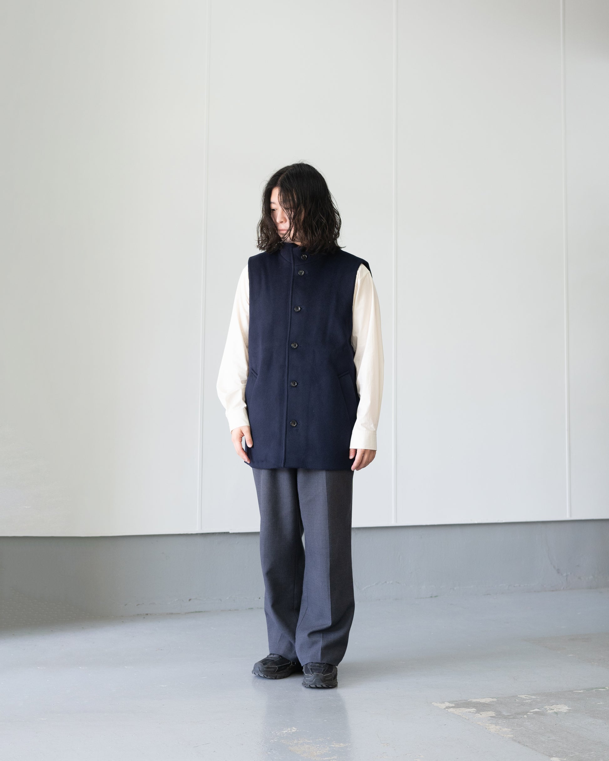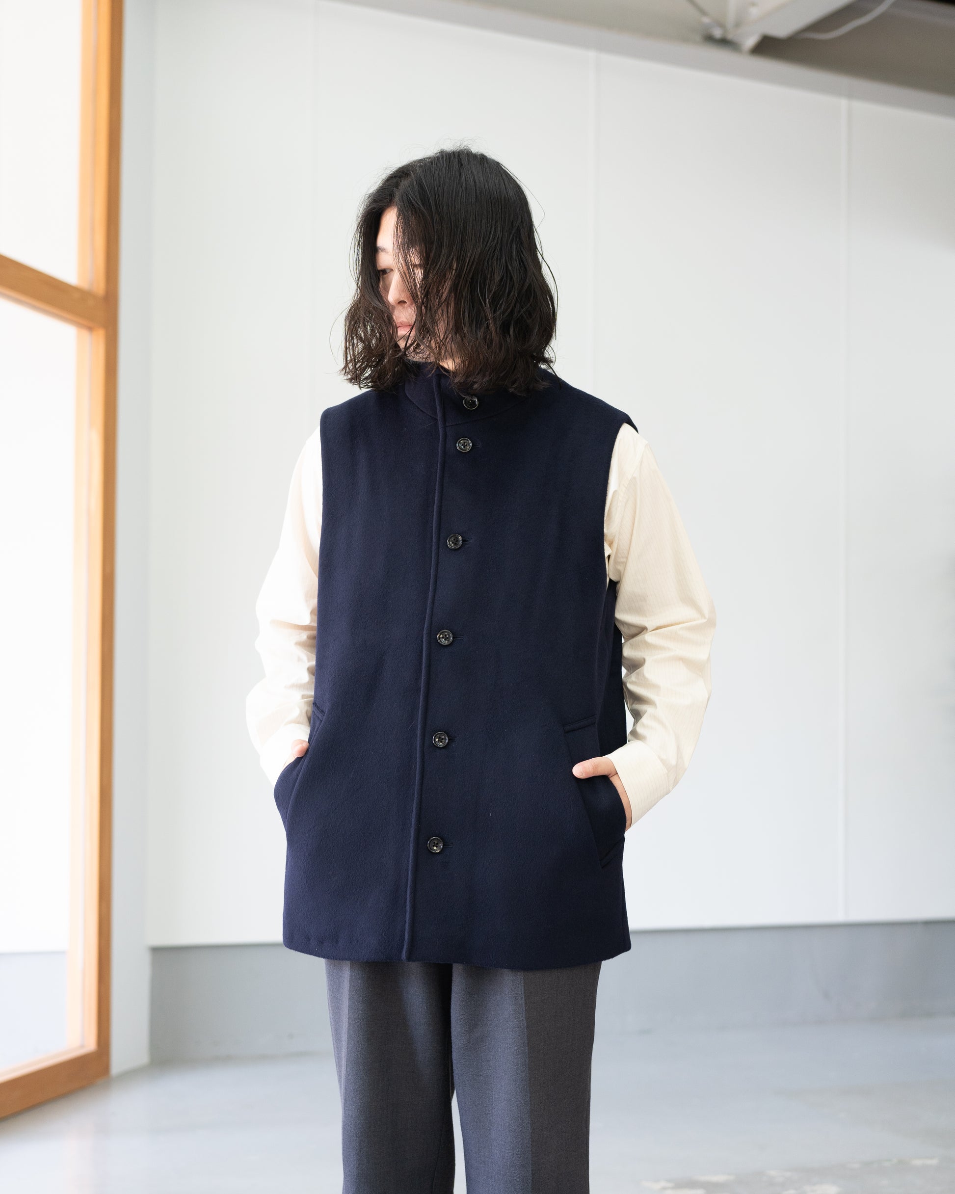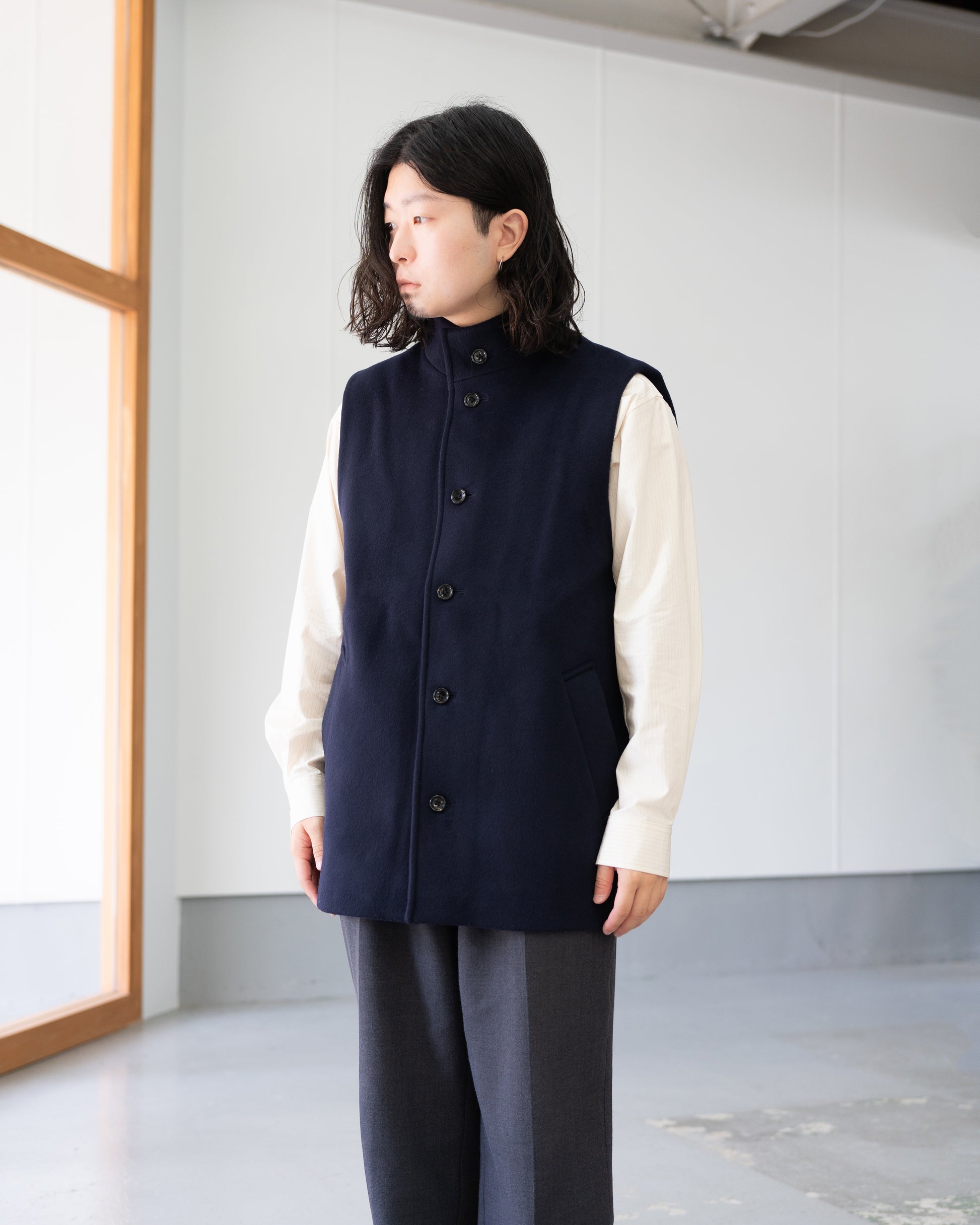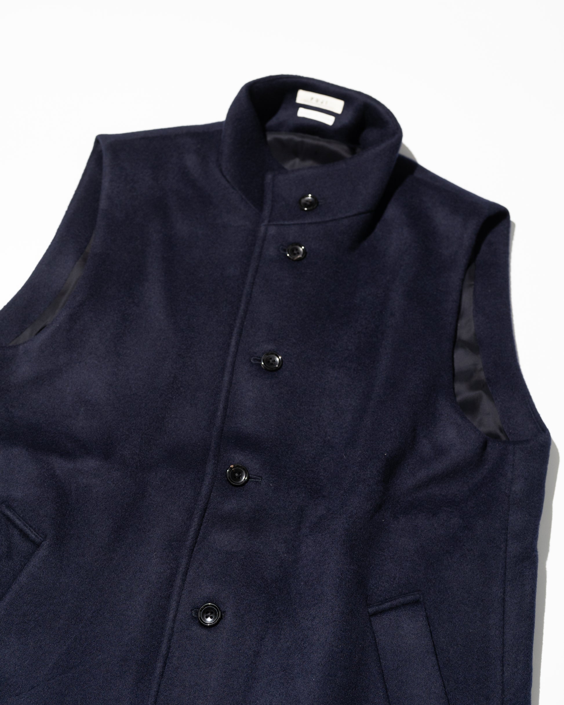 LAMBSWOOL MELTON STAND COLLAR GILET - NAVY