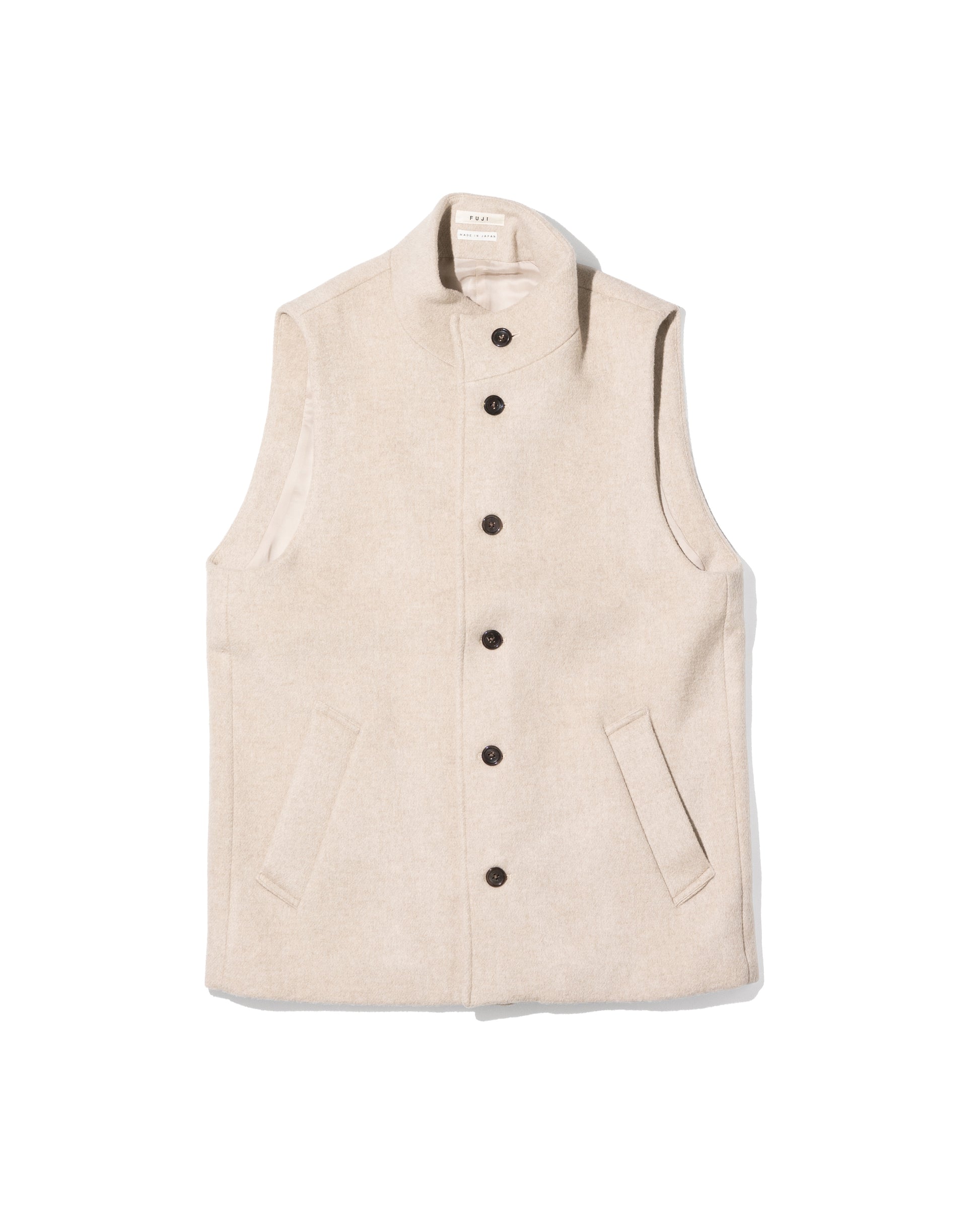 LAMBSWOOL MELTON STAND COLLAR GILET - OFF WHITE