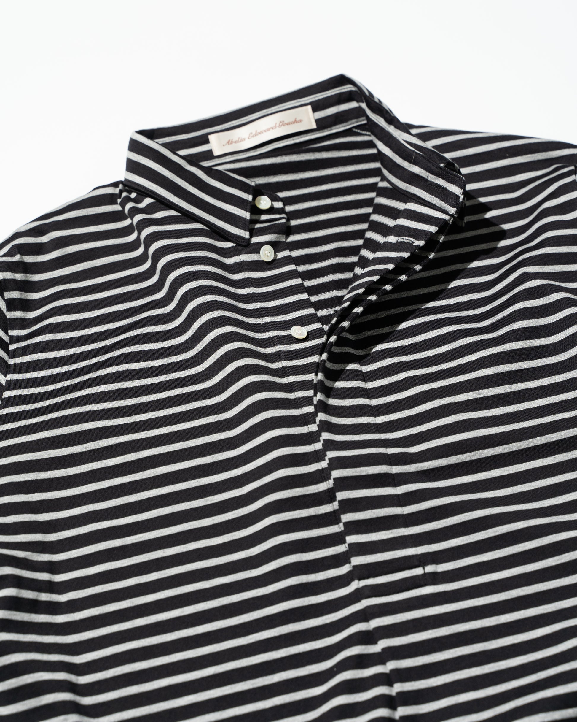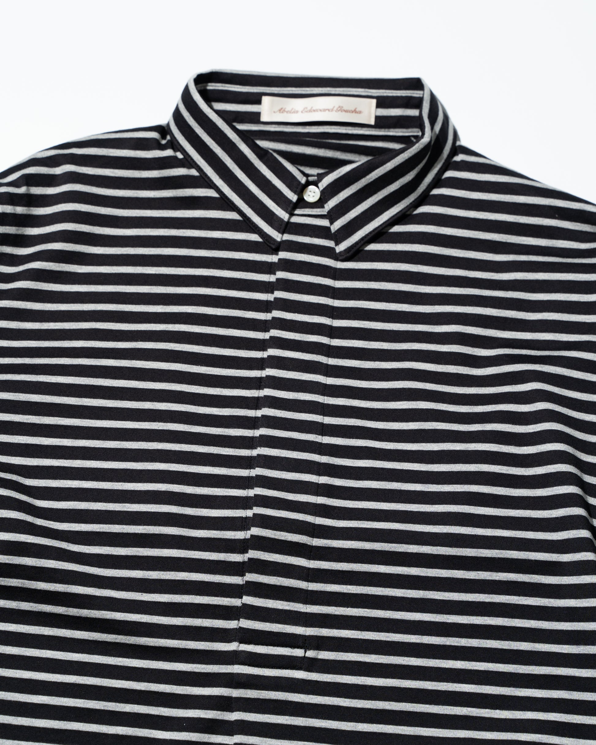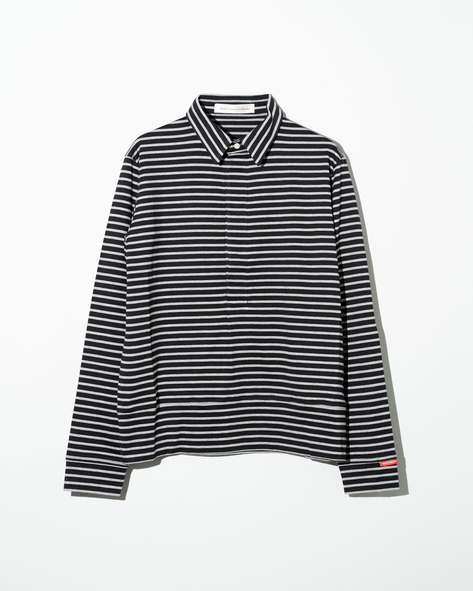 素材はカラーごとに異なり、ボーダーは柔らかな肌触りの綿天竺、グレーは軽やかで表情豊かな綿ポリのメッシュ天竺を採用。