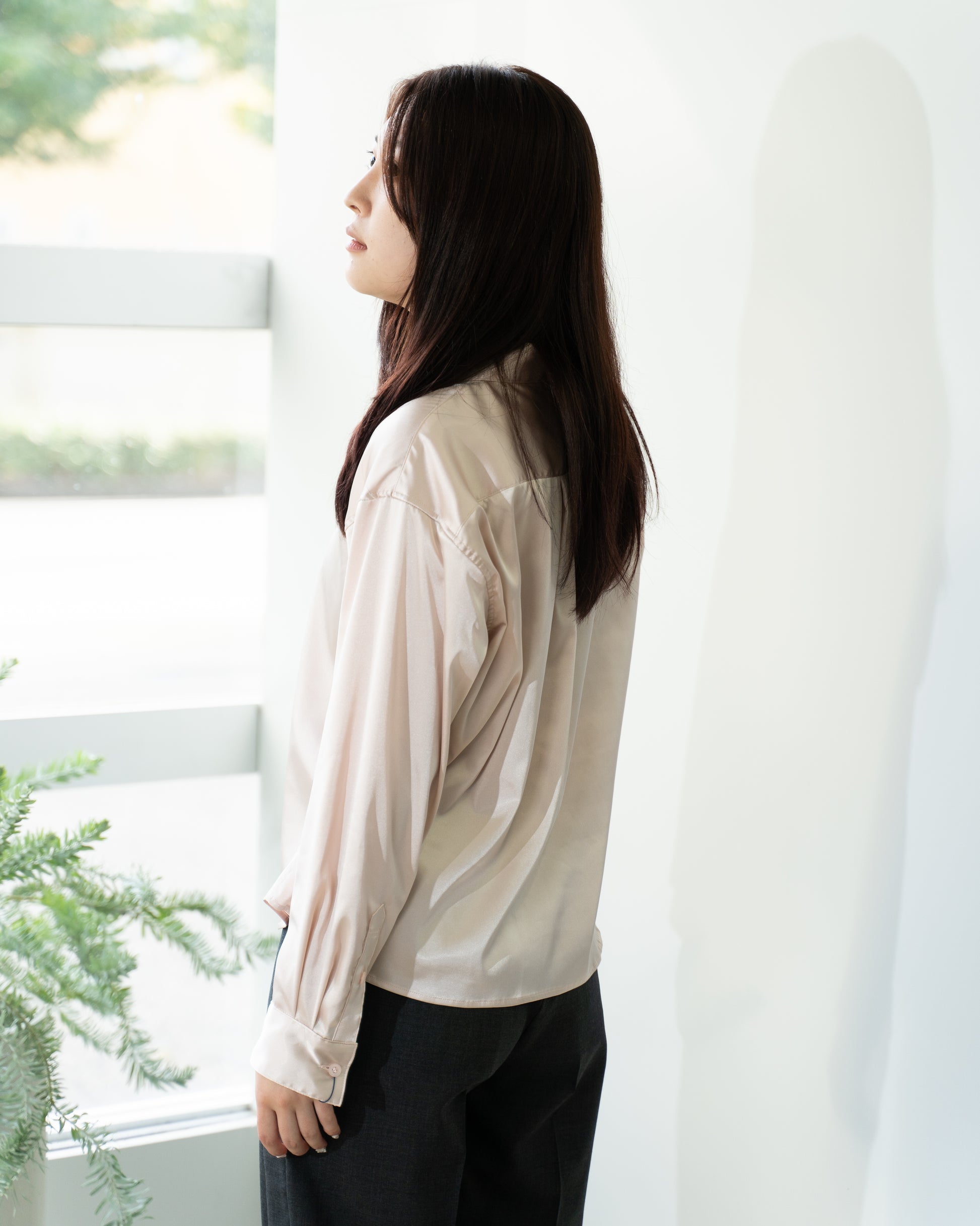 繊細な光沢をまとった、napらしい上品さが際立つサテンシャツです。