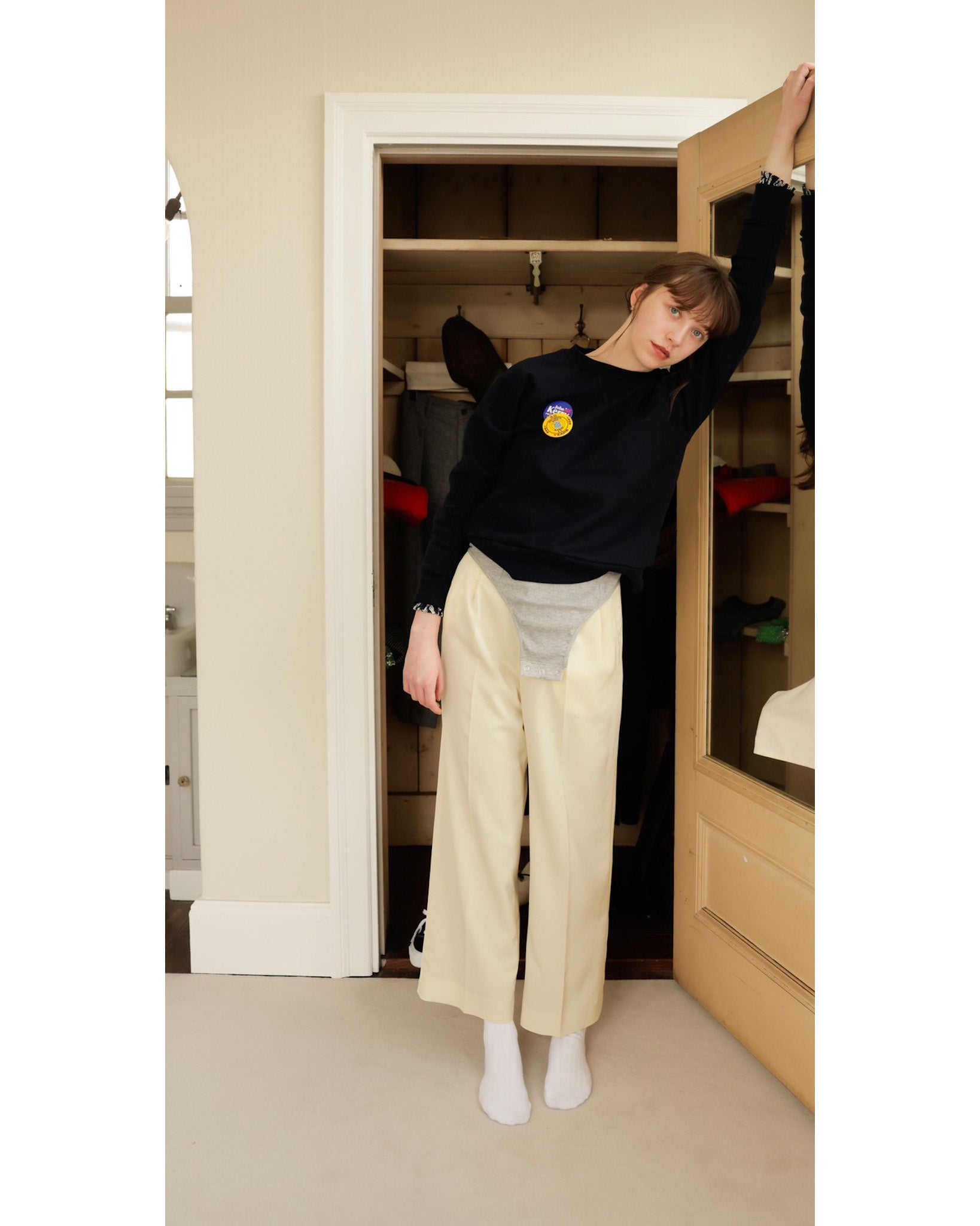 最大のポイントは、袖口にあしらった布帛の切り替えデザイン。カラーごとに異なる柄を使用しており、ひとつひとつにさりげない個性が宿る、遊び心のあるディテールです。