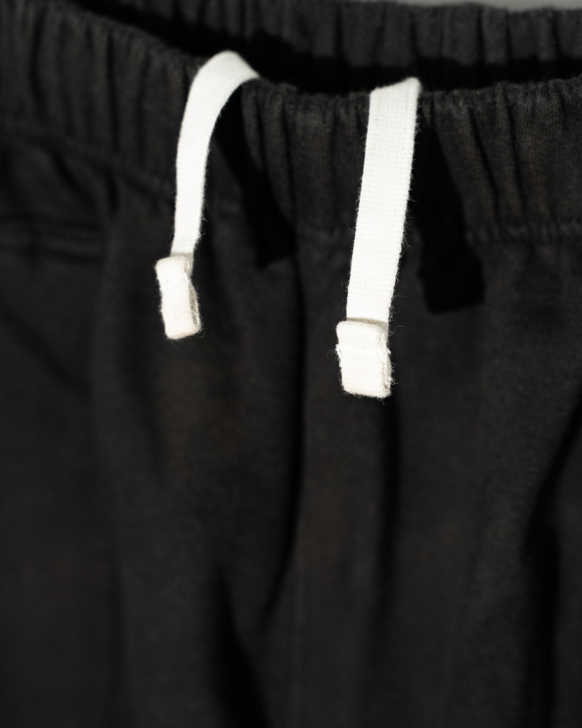 内側と外側の両方を起毛させた生地を使ったスウェットパンツは、柔らかくて暖かい着心地が特徴です。五倍子染めと脱色加工を施すことで、さらに優しく温かみのある色合いに。
