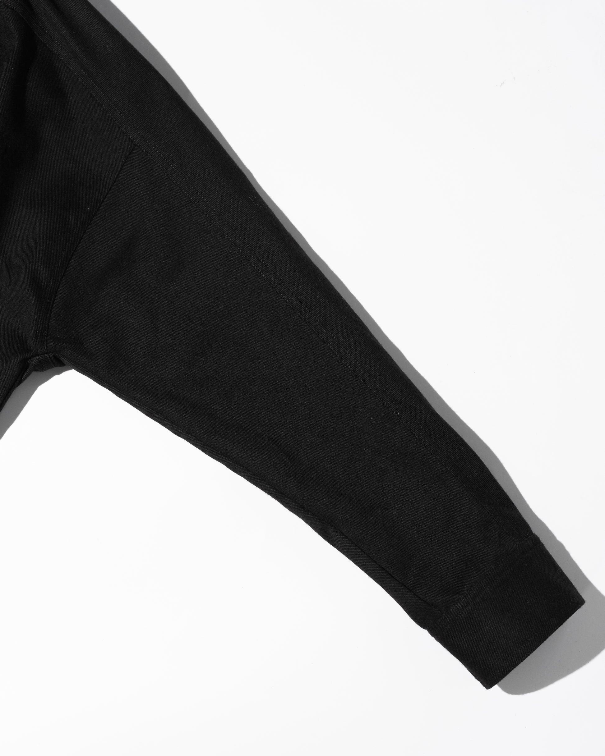 オーセンティックな綾立ちのいいカツラギに両面起毛を施した、優しい風合いの着丈が短いブルゾンです。
