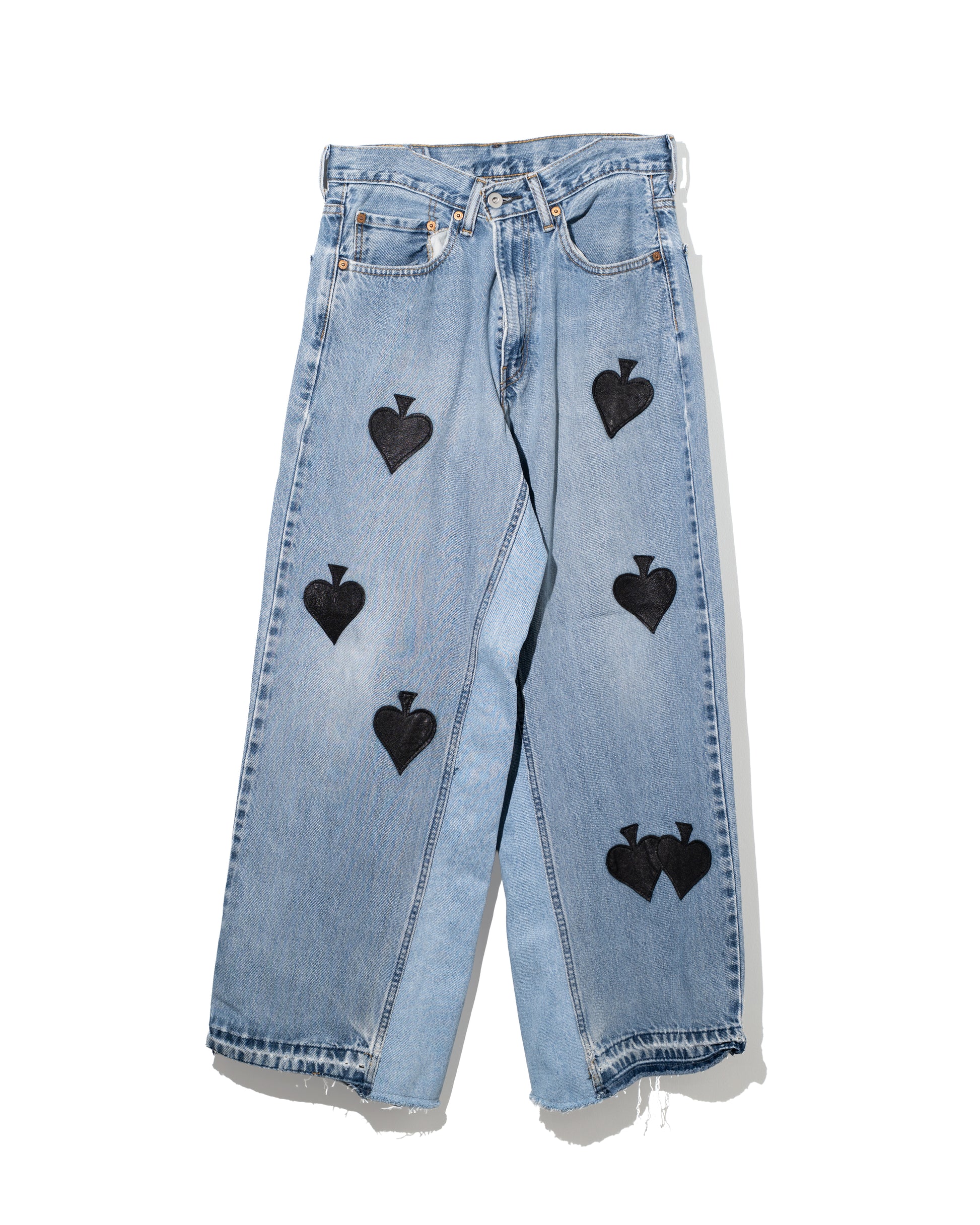 TanCのアイコンであるスペードをゴートレザーでパッチワークしたアイコニックなデニムです。
