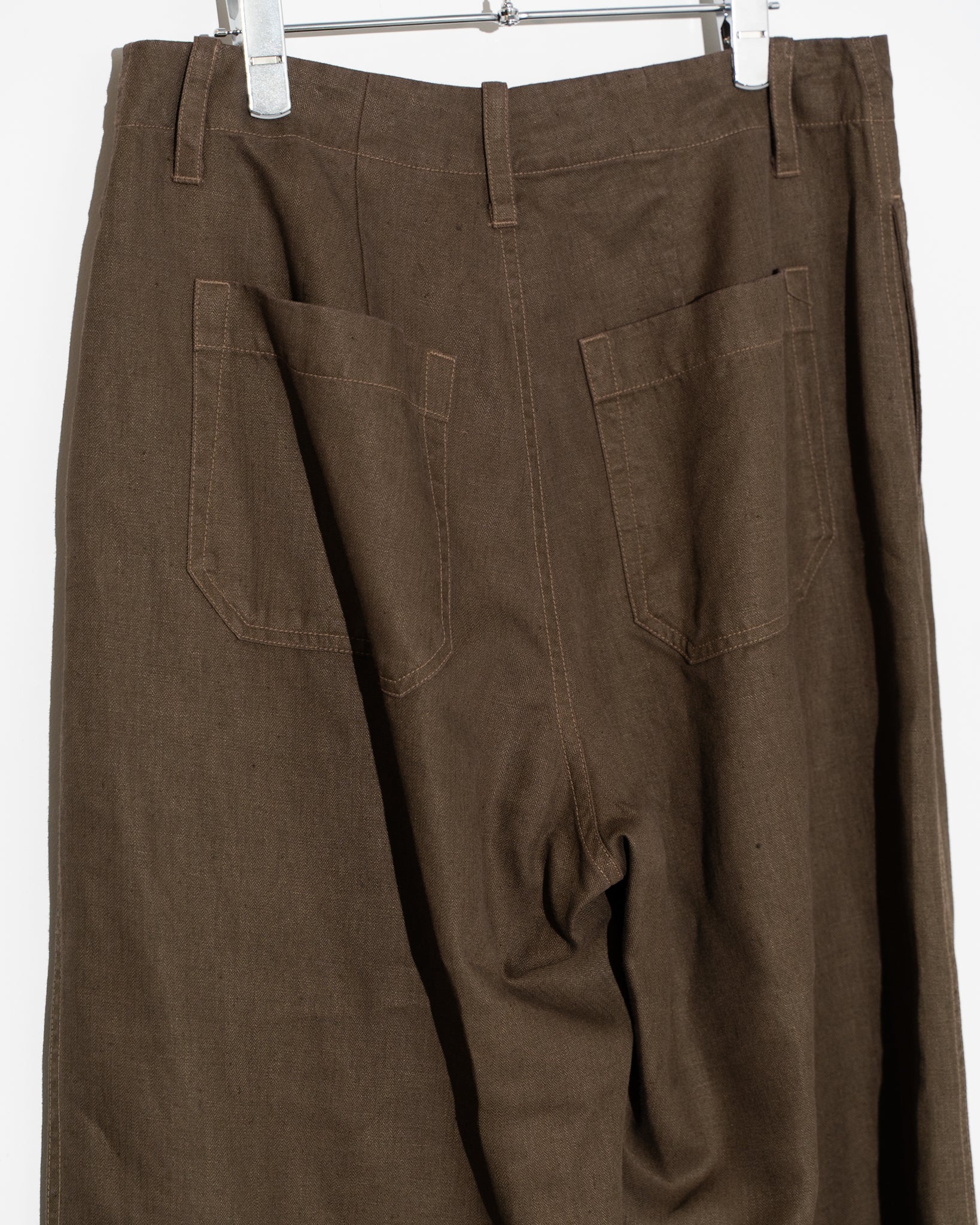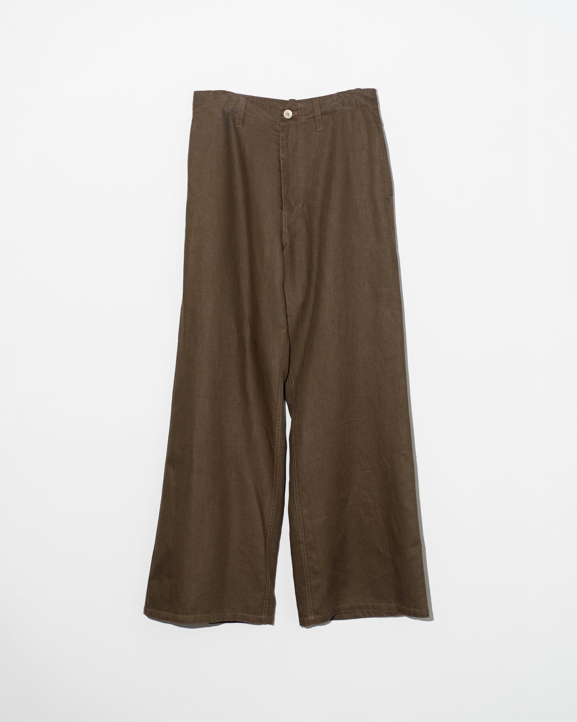 シンプルなディテールで仕立てられた、ワイドストレートのリネントラウザーズ。余計な装飾を削ぎ落とすことで、生地とシルエットの良さがそのまま伝わってきます。