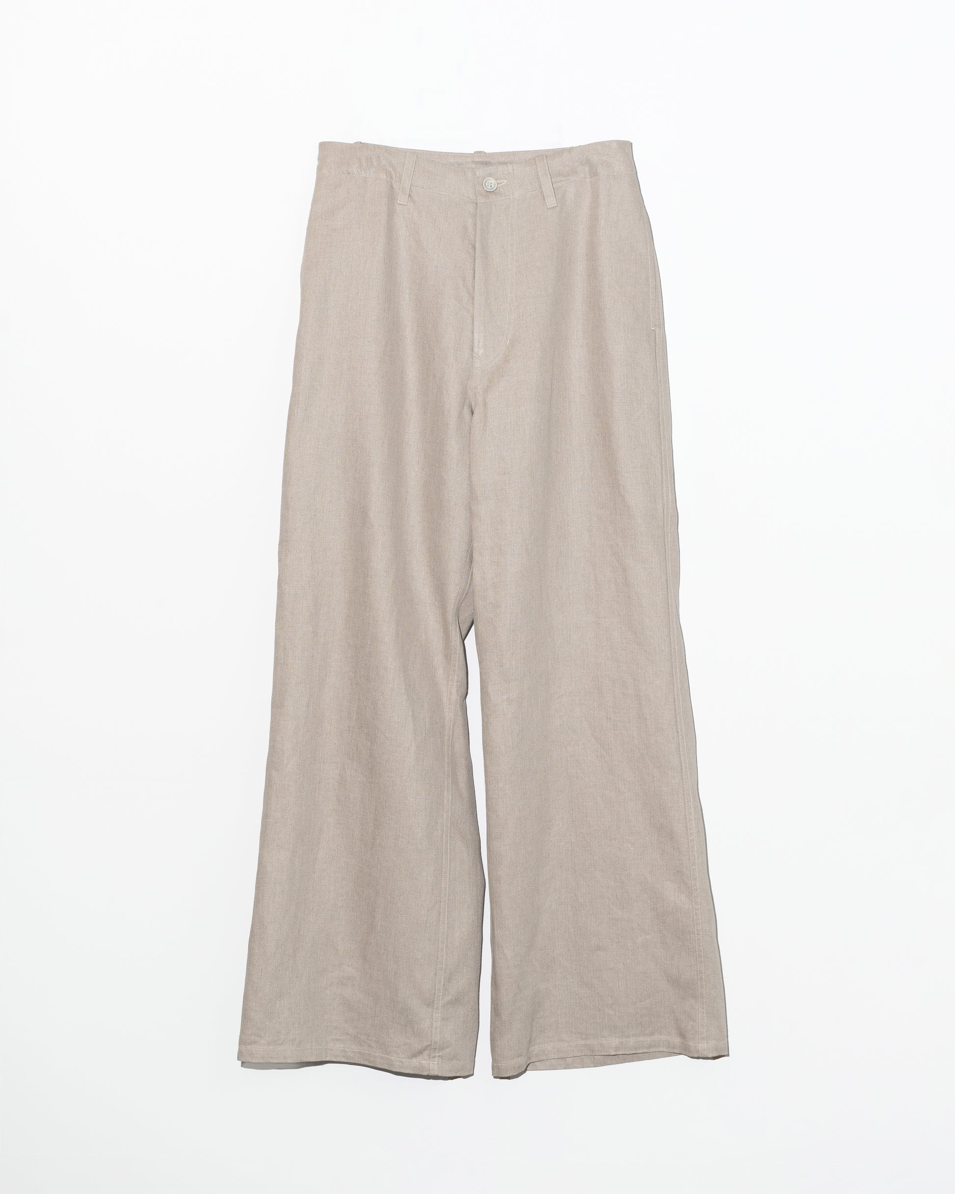 シンプルなディテールで仕立てられた、ワイドストレートのリネントラウザーズ。余計な装飾を削ぎ落とすことで、生地とシルエットの良さがそのまま伝わってきます。