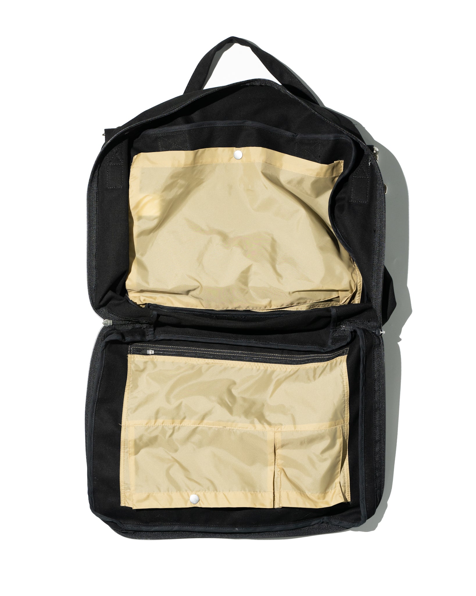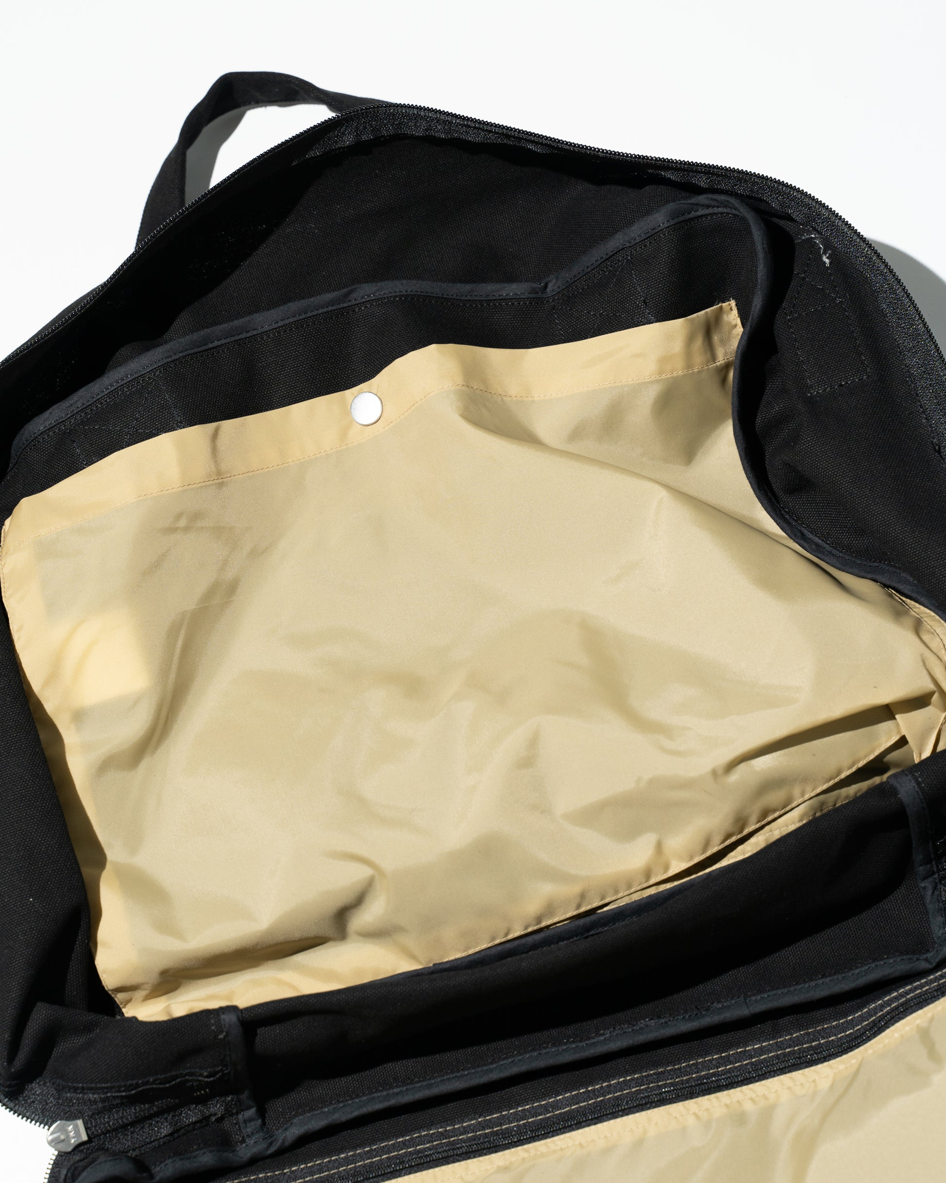 内側に用途別に様々なものを収納できるポケットがついており、それらのステッチやボタンなどをできるだけ外側に影響させるようデザイン。